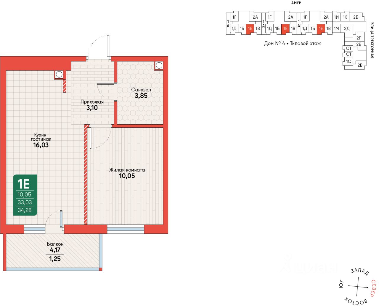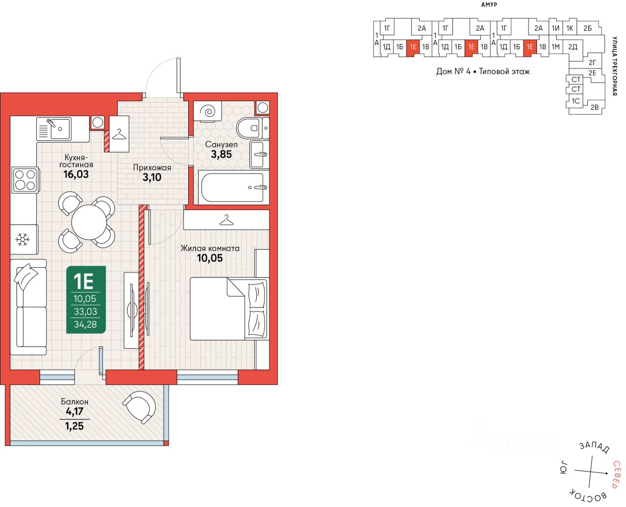 Общая площадь34,28 м2