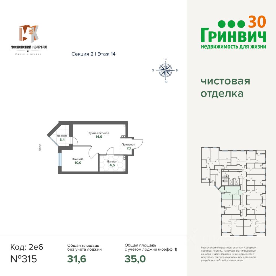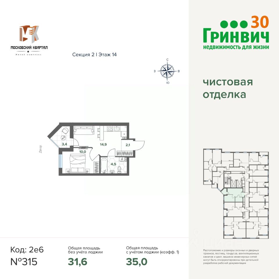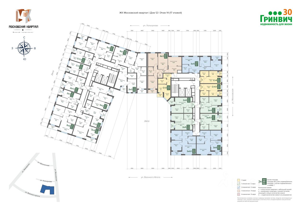 Продаётся квартира от Гринвич недвижимость в современном жилом комплексе ''Московский Квартал''. В строящемся доме (Дом 12), срок сдачи: IV-кв. 2026.