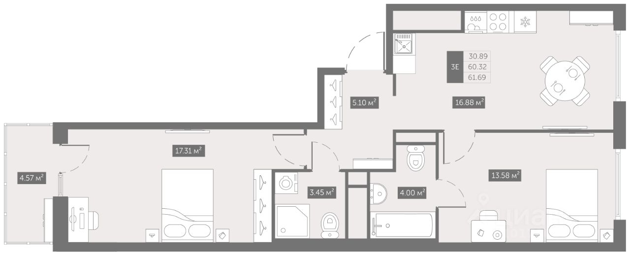 Цена со скидкой до 30% в прямой продаже от застройщика — только в этом месяце. Беспроцентная рассрочка. 2-к квартира в ЖК Up-квартал ''Новый Московский'' на 9-м этаже. Общая площадь 61,69. Без отделки.