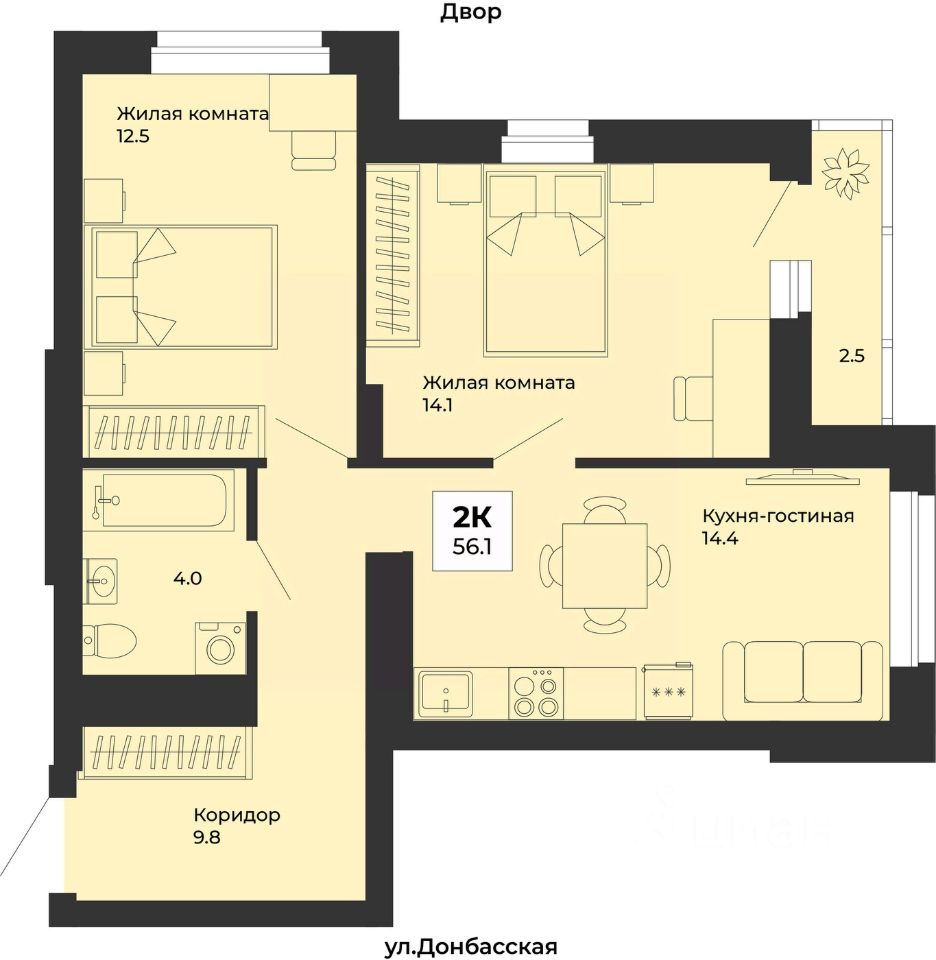 Продаётся 2-комнатная квартира в строящемся доме (Дом 5), срок сдачи: III-кв. 2028, общей площадью 56.1 кв.м., на 4 этаже. ЖК ''Белая башня'' - дома с примечательной архитектурой в сердце района Уралмаш. Комплекс расположен вблизи ведущих транспортных линий: ул. Донбасская и ул. Машиностроителей. ''Белую башню'' отличает развитая инфраструктура в сочетании с природными и историческими богатствами: рядом парк Победы, озеро Шувакиш, водонапорная ''Белая башня''. В пешей доступности несколько школ, детских садов, кафе и магазинов. Есть спортивная школа по дзюдо и самбо, лыжная база, спортивный комплекс ''Олимп'' и домашняя тренировочная арена ФК ''Урал'' - ''СКБ-Банк Арена''. В 5 минутах ходьбы ГКБ 14 и один из лучших диагностических центров области. Рядом с домом остановки трамваев, троллейбусов и автобусов. ЖК ''Белая башня'' - продуманное пространство внутри двора и функциональные планировки. Выбирайте квартиру на любой вкус: от студии до трехкомнатной. Трехсекционный жилой дом переменной этажности - это первая очередь строительства. Главное преимущество проекта - это комплексная застройка, за счет чего можно организовать пространство комплекса наиболее комфортным образом. Окончание строительства: 4 квартал 2020 Яркое сочетания современности и конструктивизма Примечательная современная архитектура комплекса с сохранением идей конструктивизма. На торцах дома будет стилизованное изображение легендарной Белой башни. Яркая отделка подъездов в фирменном стиле создают запоминающийся образ жилого комплекса ''Белая башня''. Жить в ярком доме - жить яркой жизнью.Современные технологии строительстваВысокое качество строительства обеспечивает жесткий контроль со стороны экспертов и государственных органов. Независимые друг от друга отделы технадзора технического заказчика проекта и генерального подрядчика проводят мониторинг строительства ЖК ''Белая башня''. Кроме того, эксперты проверяют стройматериалы, выполненные работы в несколько этапов. К примеру, бетон тестируют при доставке на стройплощадку и после набора прочности.Отделка квартиры от застройщика в подарокГотовая квартира значительно упрощает переезд в новое жильё. Квартиры в ЖК ''Белая башня'' сдаются с чистовой отделкой. Выровненные стены, пол и потолок, на полу ламинат, на стенах обои под покраску, установлены межкомнатные и входные двери, в ванной - сантехника и плитка. При отделке квартиры мы тщательно подходим к выбору отделочных материалов и их поставщиков. В квартирах улучшенная шумоизоляция.Закрытый двор без машинБезопасность маленьких жителей ЖК ''Белая башня'' - важная составляющая концепции. Архитектурное решение проекта позволило создать безопасный закрытый от машин двор с улучшенными детскими площадками. Для спокойствия родителей и радости их детей.Современная клиника во двореИнфраструктура - одно из преимуществ ''Белой башни''. В первом доме комплекса расположится современная клиника ''Здоровье 365'', отличающаяся своим качественным подходом. Функциональные планировкиКвартиры комплекса ''Белая башня'' - эт