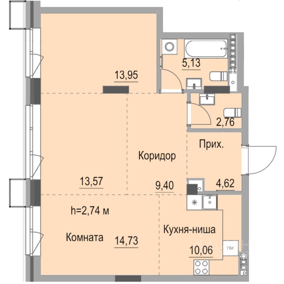 Квартира: Квартиры передаем собственникам со свободной планировкой. Внутриквартирные перегородки выполняем только для санузлов. Благодаря увеличенным пролетам между несущими конструкциями здания, 7,5 - 9,0 м, вы сможете реализовать в своей квартире практически любой дизайн-проект.