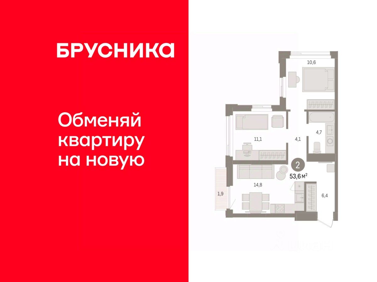 Квартира с кухней-гостиной и двумя спальнями в жилом районе ''Зарека''. Особенности планировки: балкон, предчистовая отделка. квартиры в нашей базе: ЗРК05.1-Ж1.20.6.