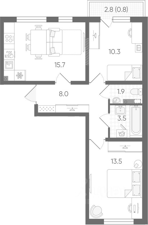 Предлагаем вашему вниманию светлую квартиру с продуманной планировкой.