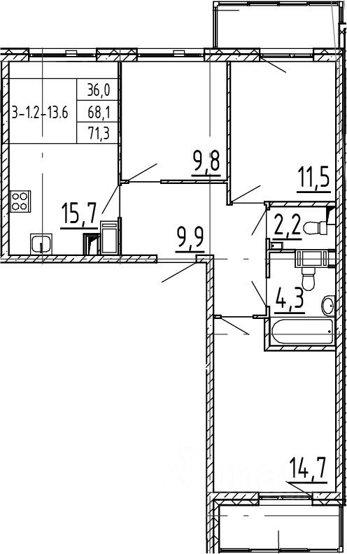Общая площадь71,3 м2