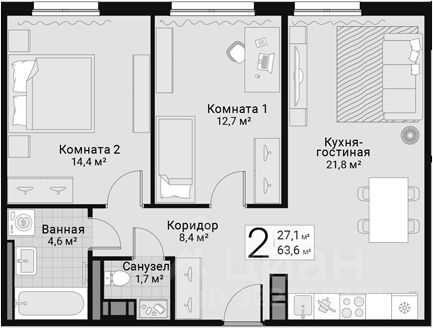 Продается отличная 2-комнатная квартира в современном доме, построенном в 2024 году. Общая площадь квартиры — 63.6 кв. м, кухня — просторная, 21.8 кв. м. Квартира находится на 10-м этаже 13-этажного дома. Высота потолков составляет 2.75 метра, что создает ощущение дополнительного простора. Из окон открывается вид во двор, поэтому в квартире всегда тихо и уютно.