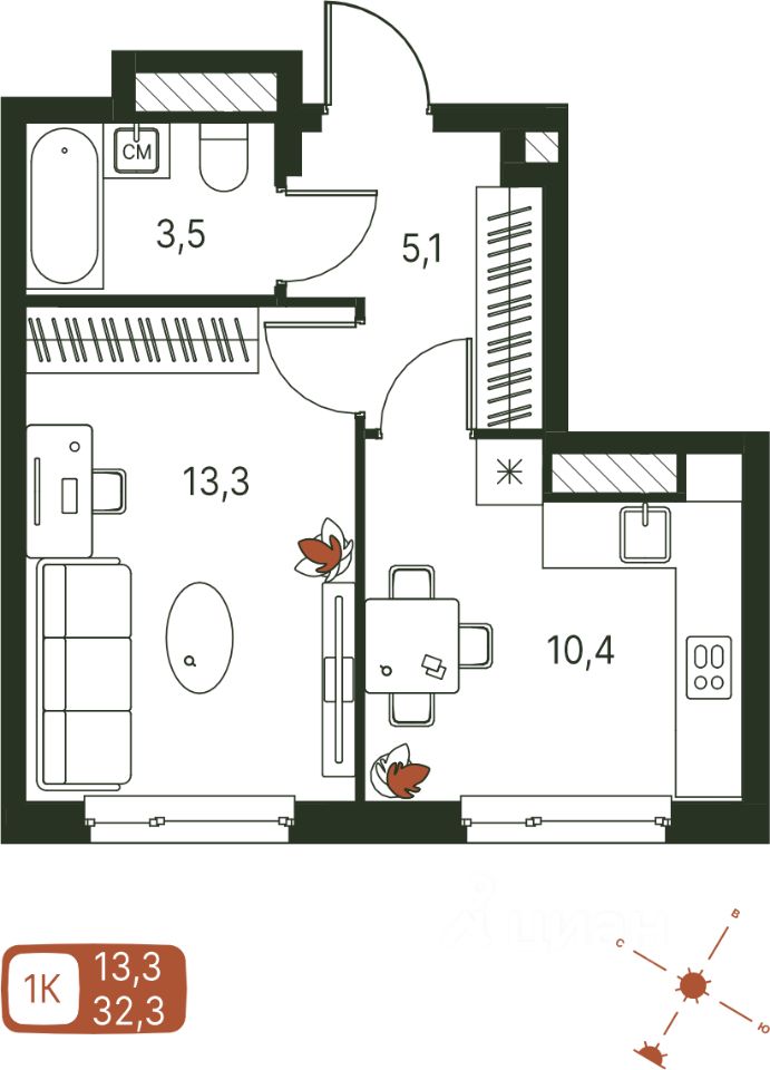 Продаётся 1-комнатная квартира в строящемся доме (Серебристая, 1), срок сдачи: IV-кв. 2027, общей площадью 32.3 кв.м., на 9 этаже. Теплые кварталы ''Погода'' — это новый грандиозный проект от создателя Спортивного микрорайона ''Ива'', федерального застройщика ''Девелопмент-Юг'' .