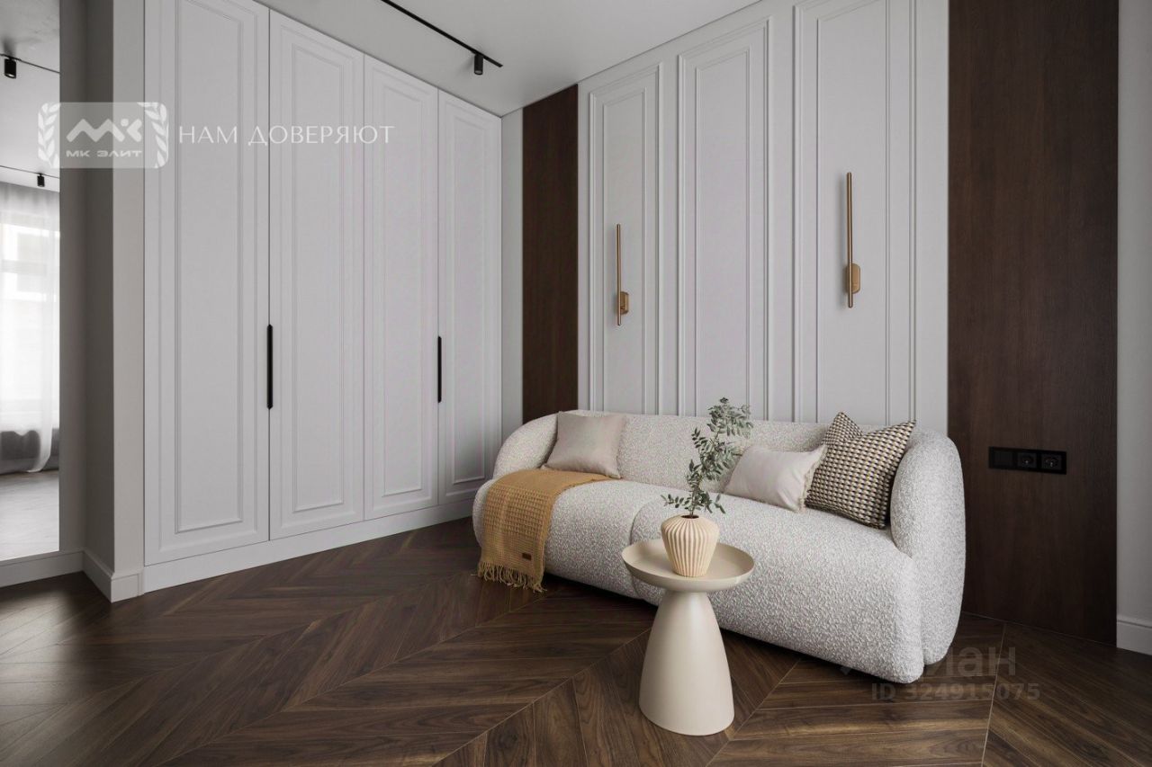 Третью спальню можно оборудовать под гардеробную. Собственники готовы ее оснастить полноценной системой хранения за свой счет.