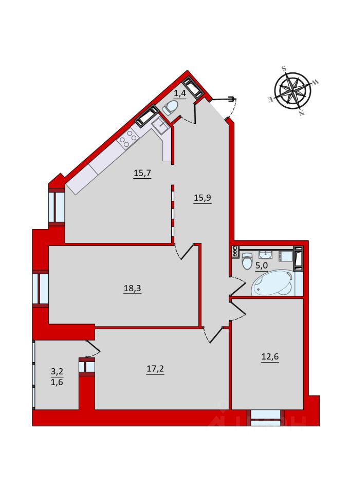 3 ккв в доме 2003 года постройки. Закрытая охраняемая территория с парковочными местами. В квартире 2 санузла, большая прихожая 16 м , кухня-гостиная 15.7 м, комнаты изолированные.