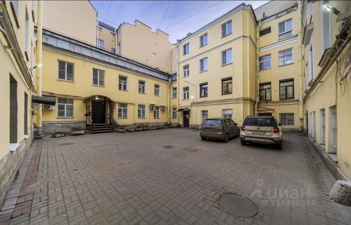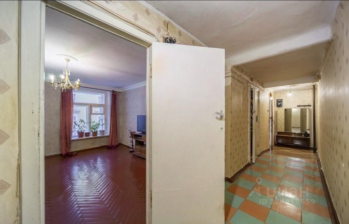 Продается трехкомнатная квартира площадью 94.5 кв. м, расположенная на втором этаже двухэтажного кирпичного дома в третьем дворе от Невского проспекта.