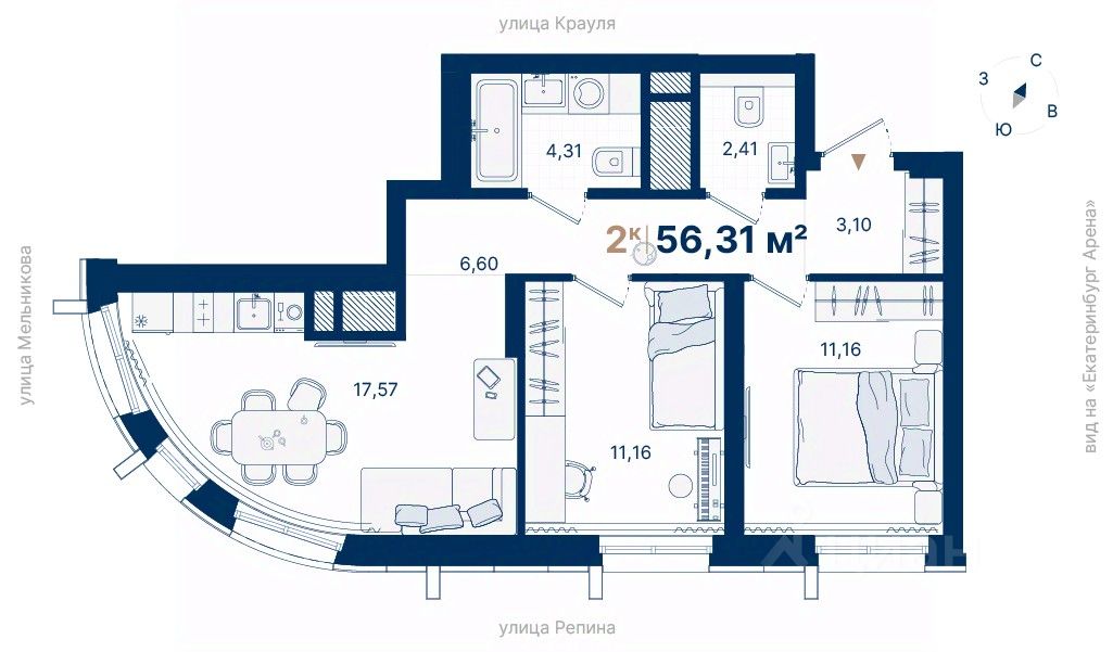 Дома расположены на стрелке улиц Репина и Крауля, рядом со стадионом ''Екатеринбург Арена''. Здесь уже есть все необходимое для жизни: сады, школы, поликлиники и магазины.