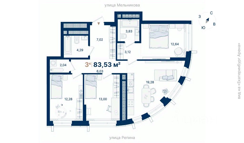 Дома расположены на стрелке улиц Репина и Крауля, рядом со стадионом ''Екатеринбург Арена''. Здесь уже есть все необходимое для жизни: сады, школы, поликлиники и магазины.