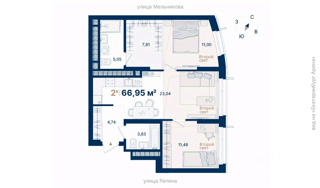 Дома расположены на стрелке улиц Репина и Крауля, рядом со стадионом ''Екатеринбург Арена''. Здесь уже есть все необходимое для жизни: сады, школы, поликлиники и магазины.