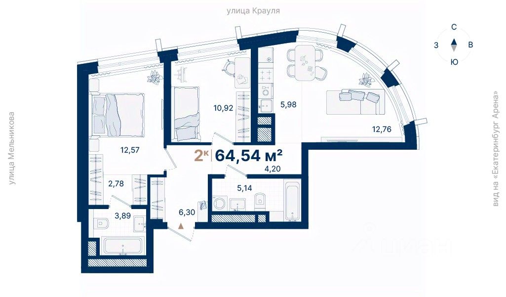 Дома расположены на стрелке улиц Репина и Крауля, рядом со стадионом ''Екатеринбург Арена''. Здесь уже есть все необходимое для жизни: сады, школы, поликлиники и магазины.