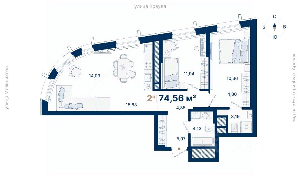 Дома расположены на стрелке улиц Репина и Крауля, рядом со стадионом ''Екатеринбург Арена''. Здесь уже есть все необходимое для жизни: сады, школы, поликлиники и магазины.