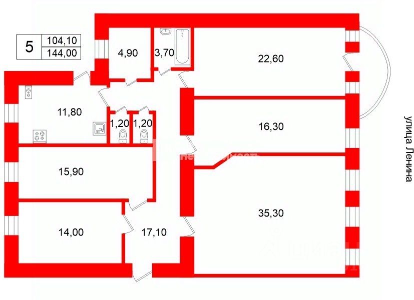 Планировка позволяет сделать квартиру с кухней-гостиной, двумя большими санузлами, просторными спальнями.
