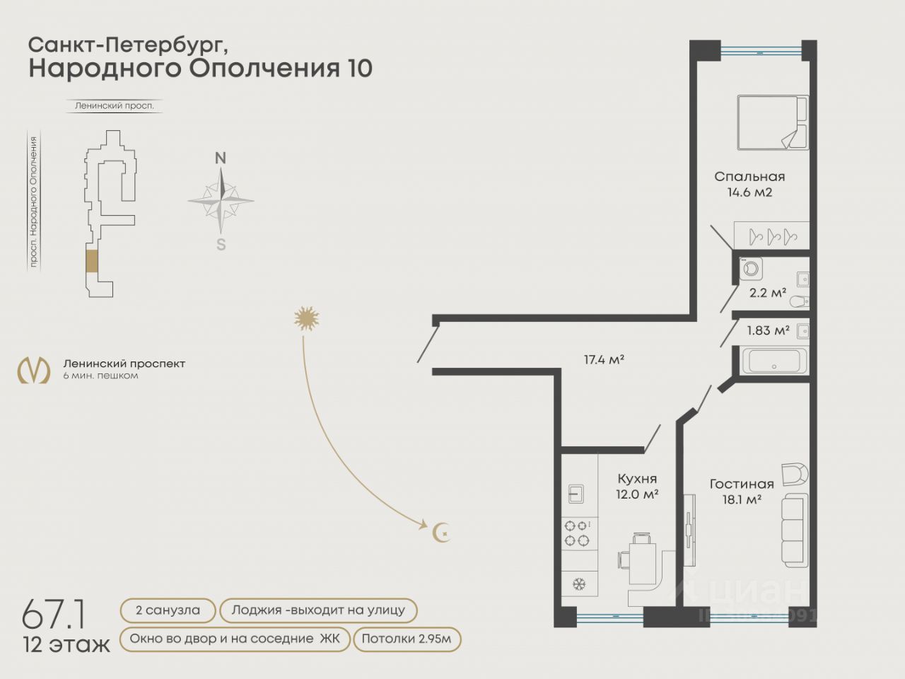 Арт. 127192977 Предлагаю вашему вниманию в ЖК ''Современник'' уютную и двустороннюю квартиру у метро Ленинский проспект.