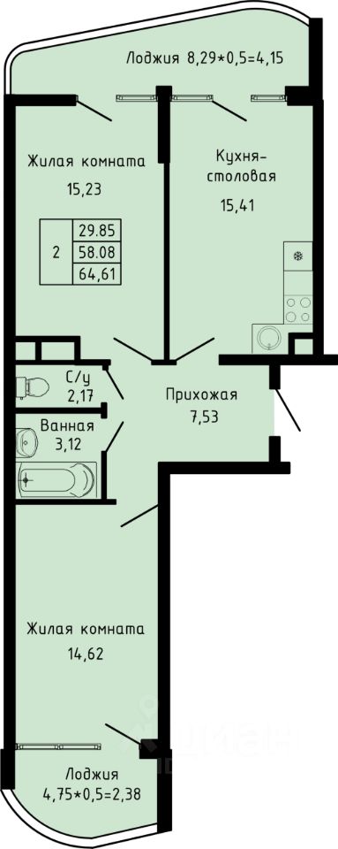 продам 2-к, Ольгинка24 013 000 ₽