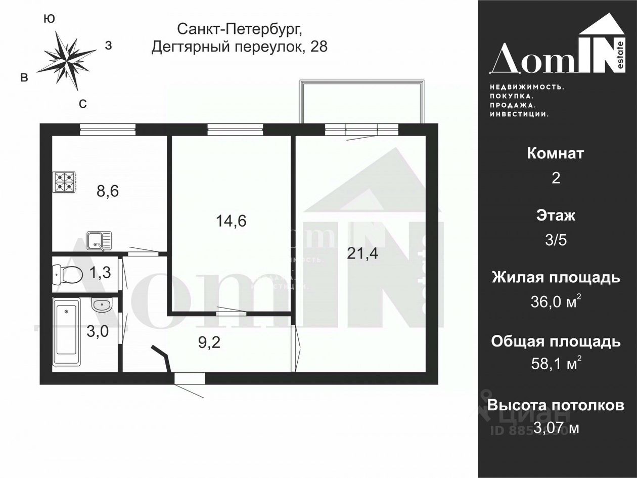 продам 2-к, Дегтярный переулок, 2813 990 000 ₽