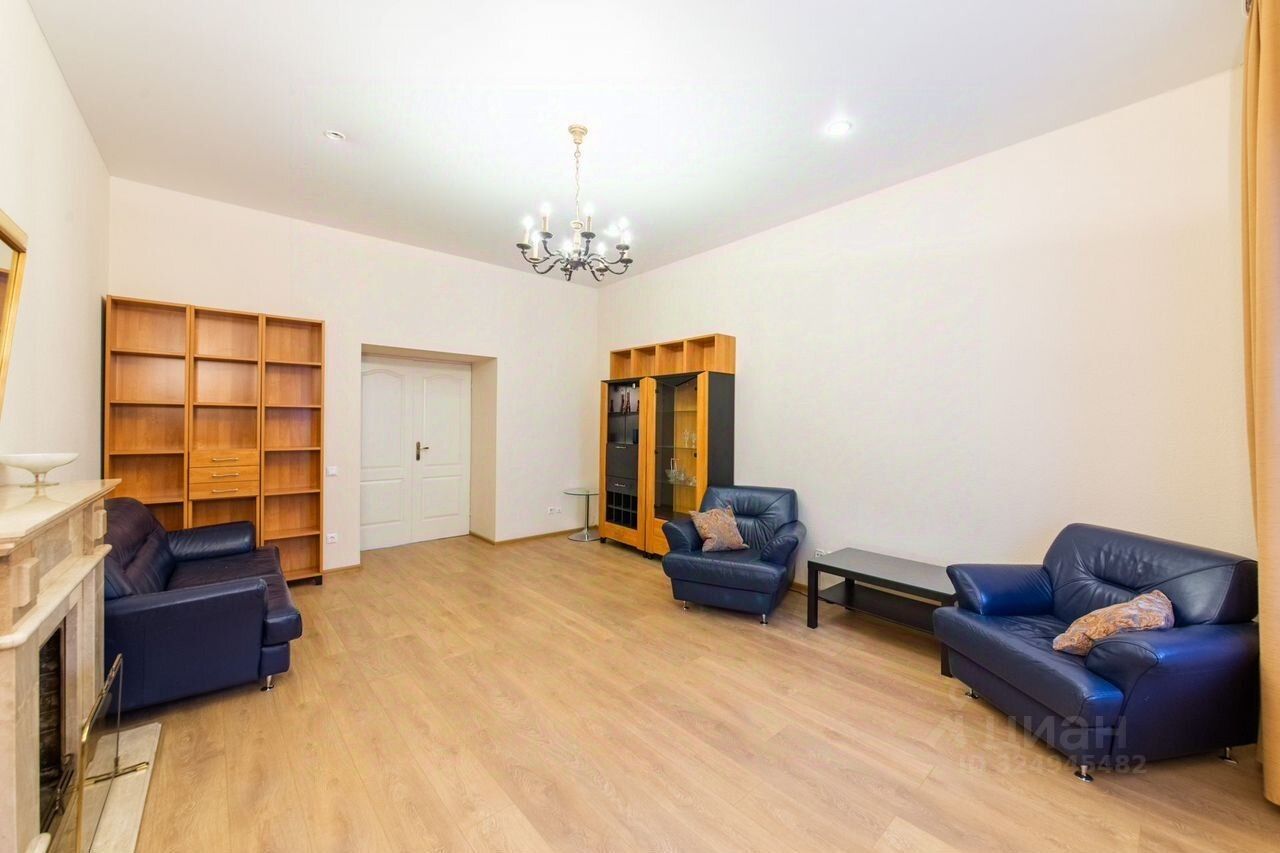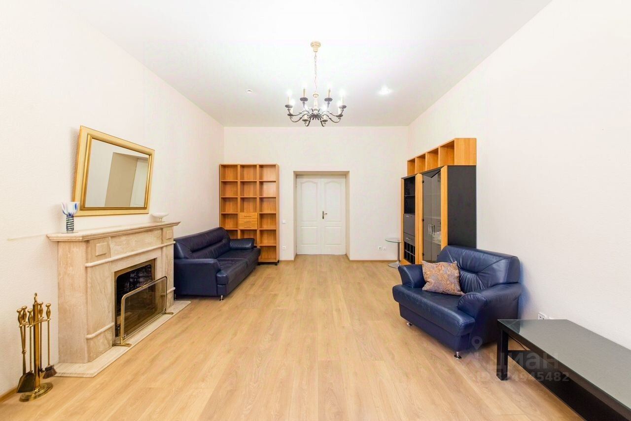 В квартире кухня-столовая, просторная гостиная с камином, 2 спальни и кабинет (при необходимости в нем так же есть спальное место).