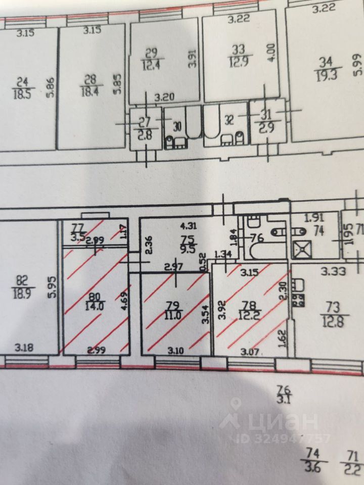 + В большой комнате выделена зона гардеробной - 3.5 м