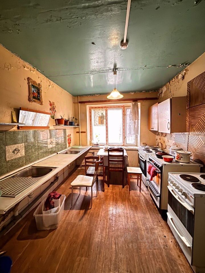 Комната 12 кв.м. малонаселенной коммунальной квартире на 10 этаже. Мебель в комнате, стиральная машина остается покупателю. Просторная кухня, место для шкафа в коридоре, несколько санузлов. Тихие хорошие соседи. До остановки общественного транспорта 2 мин пешком. Рядом торговый комплекс, кинотеатр, магазины, детские сады, школы. В 10 минутах пешком парк Александрино. До метро проспект Ветеранов 10 мин транспортном.
