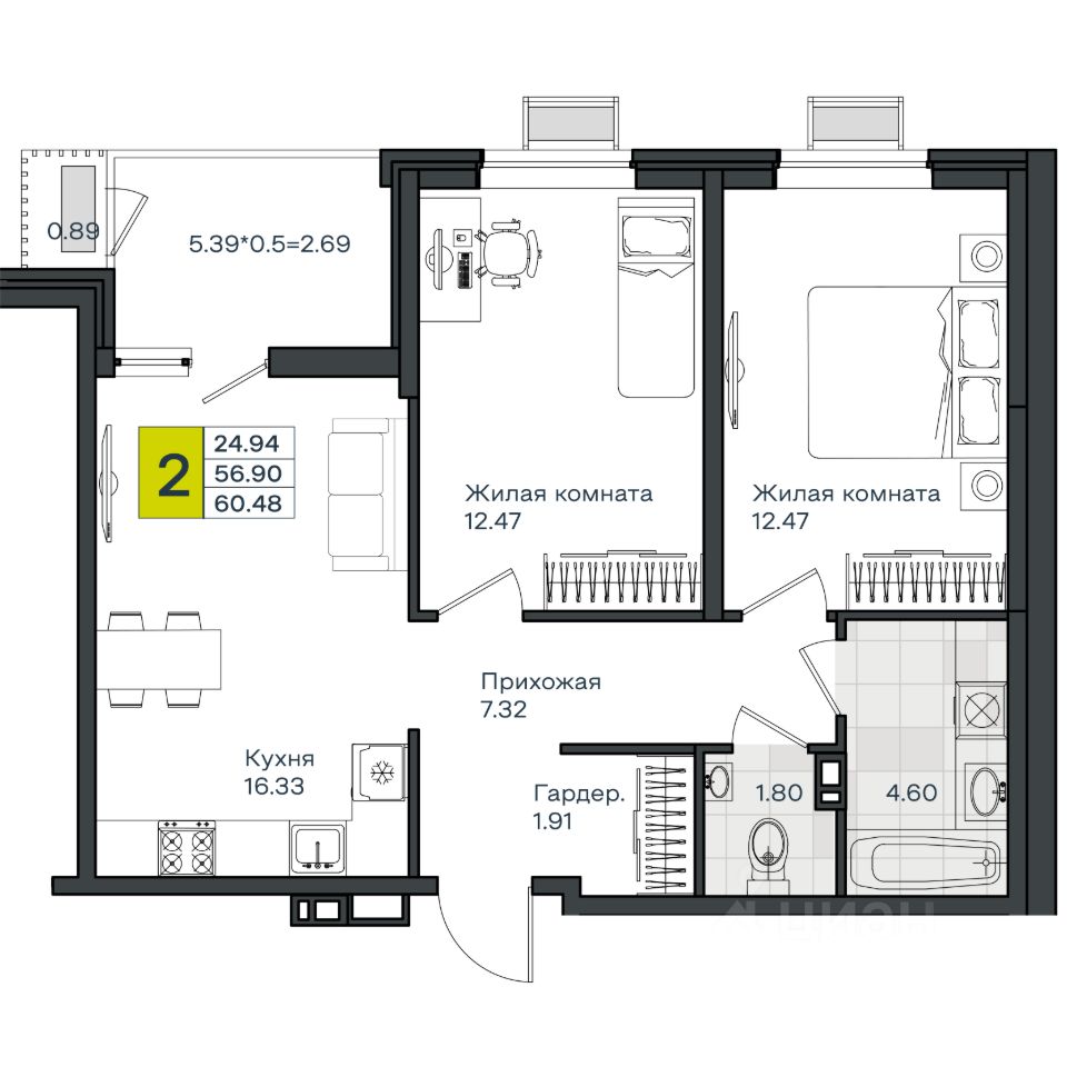 Общая площадь60,48 м2