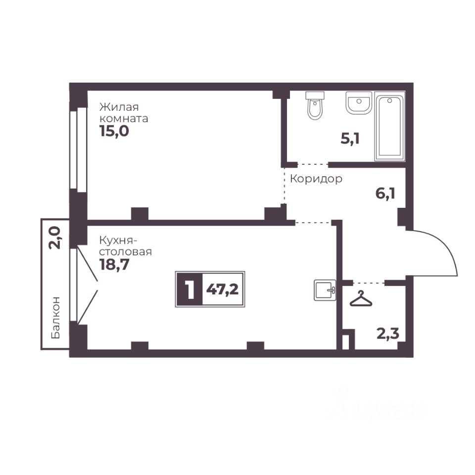 Общая площадь47,2 м2