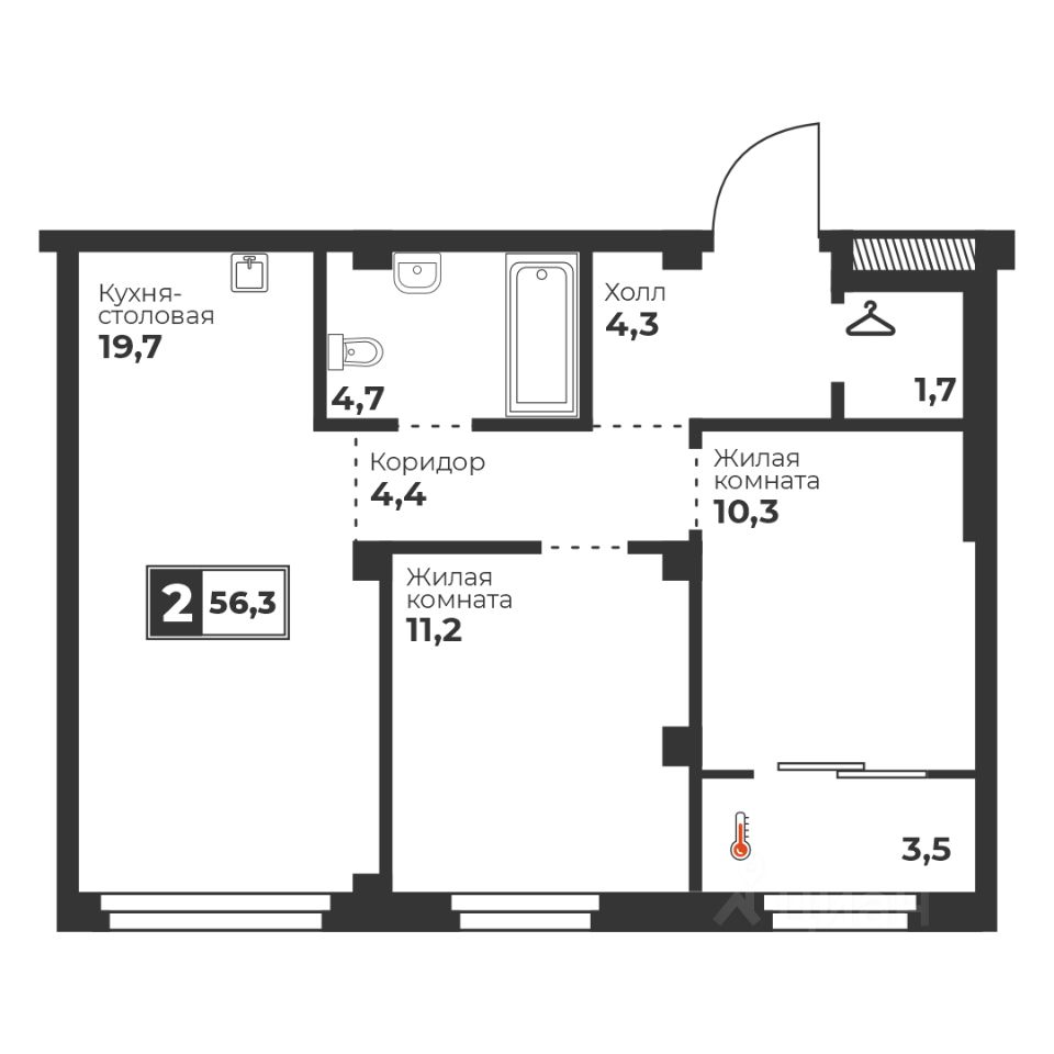 Общая площадь56,3 м2