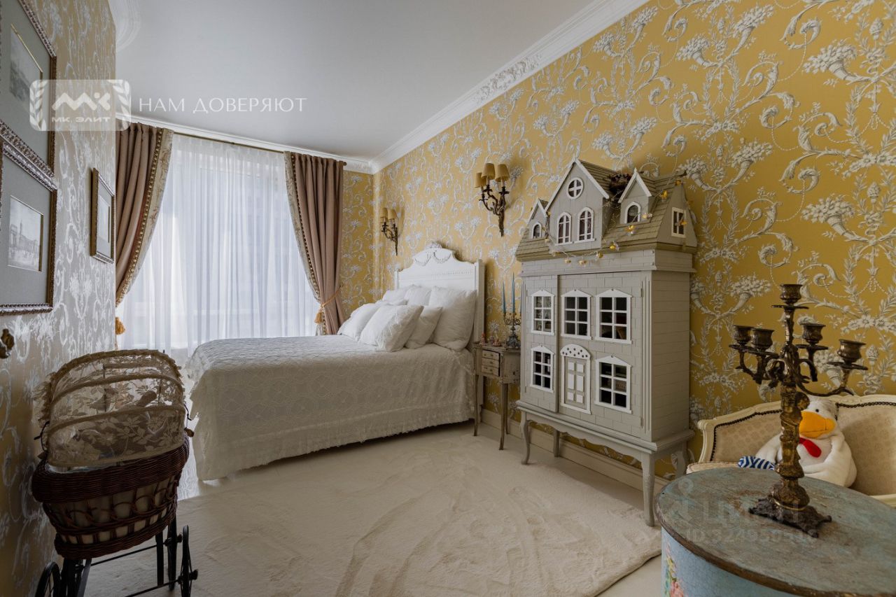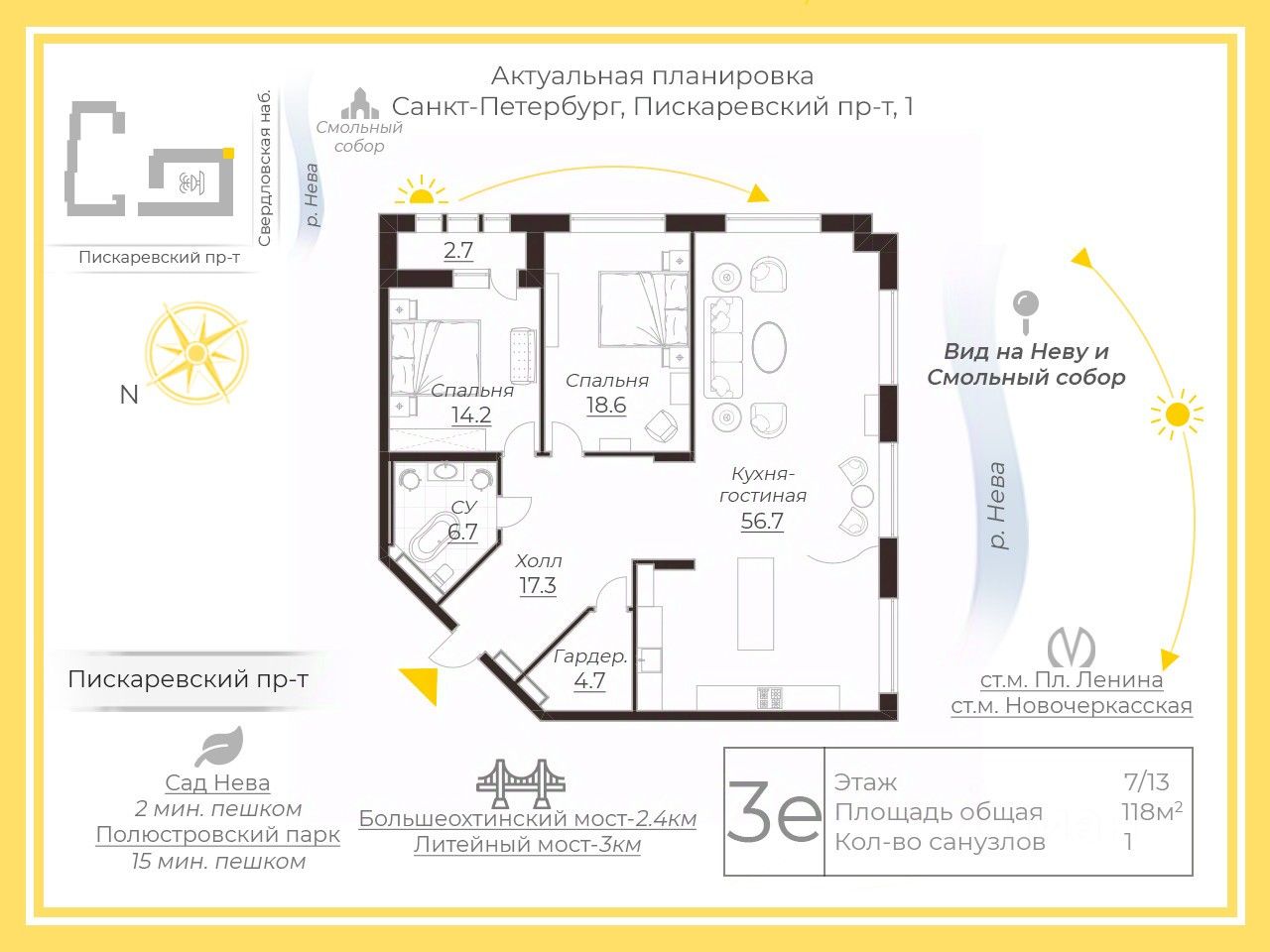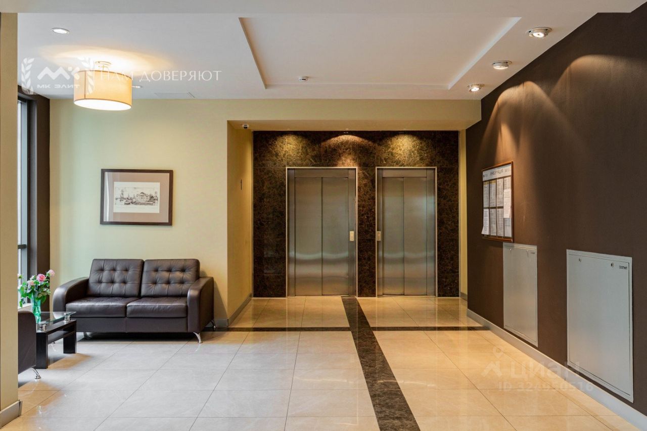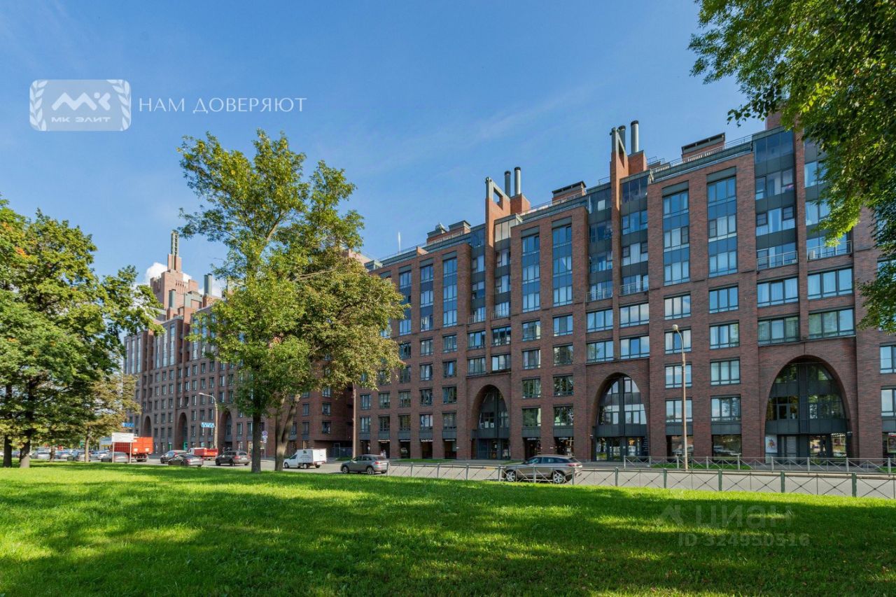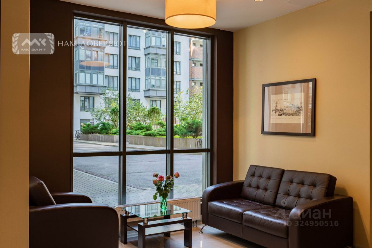 Две спальни, огромная кухня-гостиная, залитая светом, масштабные окна с видом на мерцающую воду, Смольный собор и историческую панораму города, гардеробная, просторная ванная комната.
