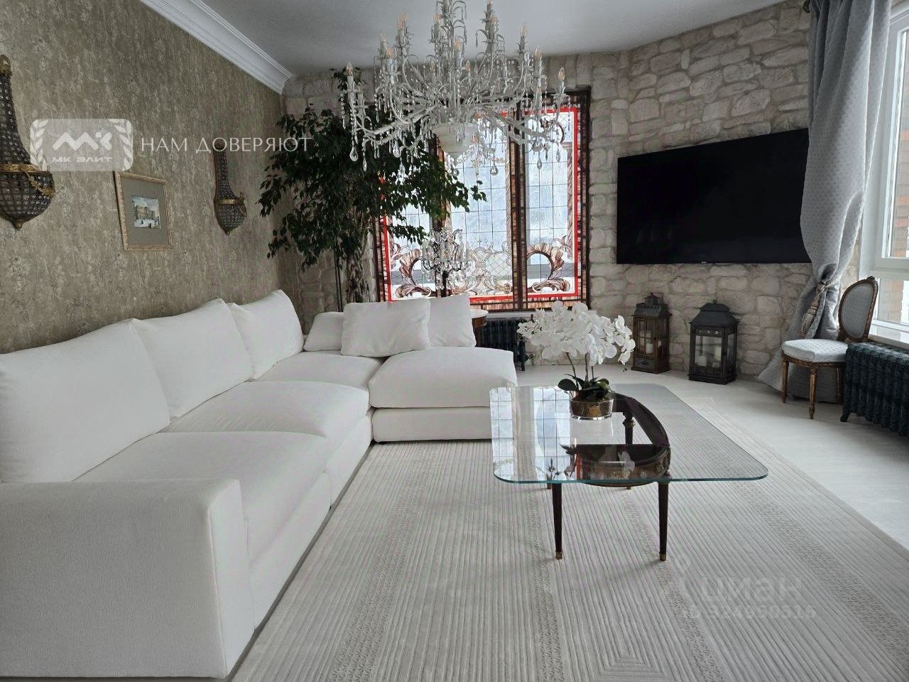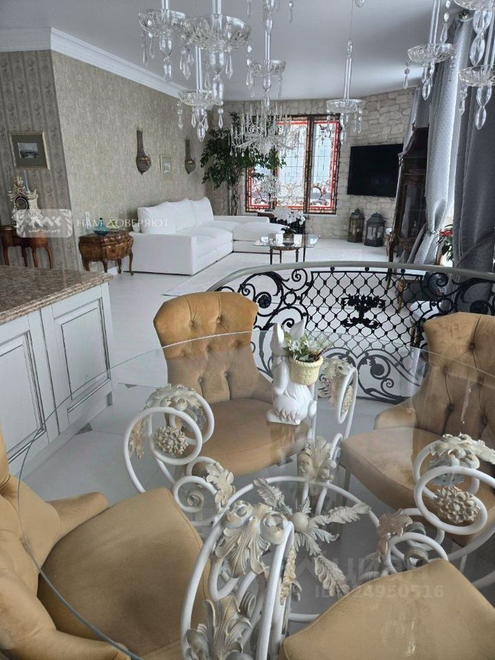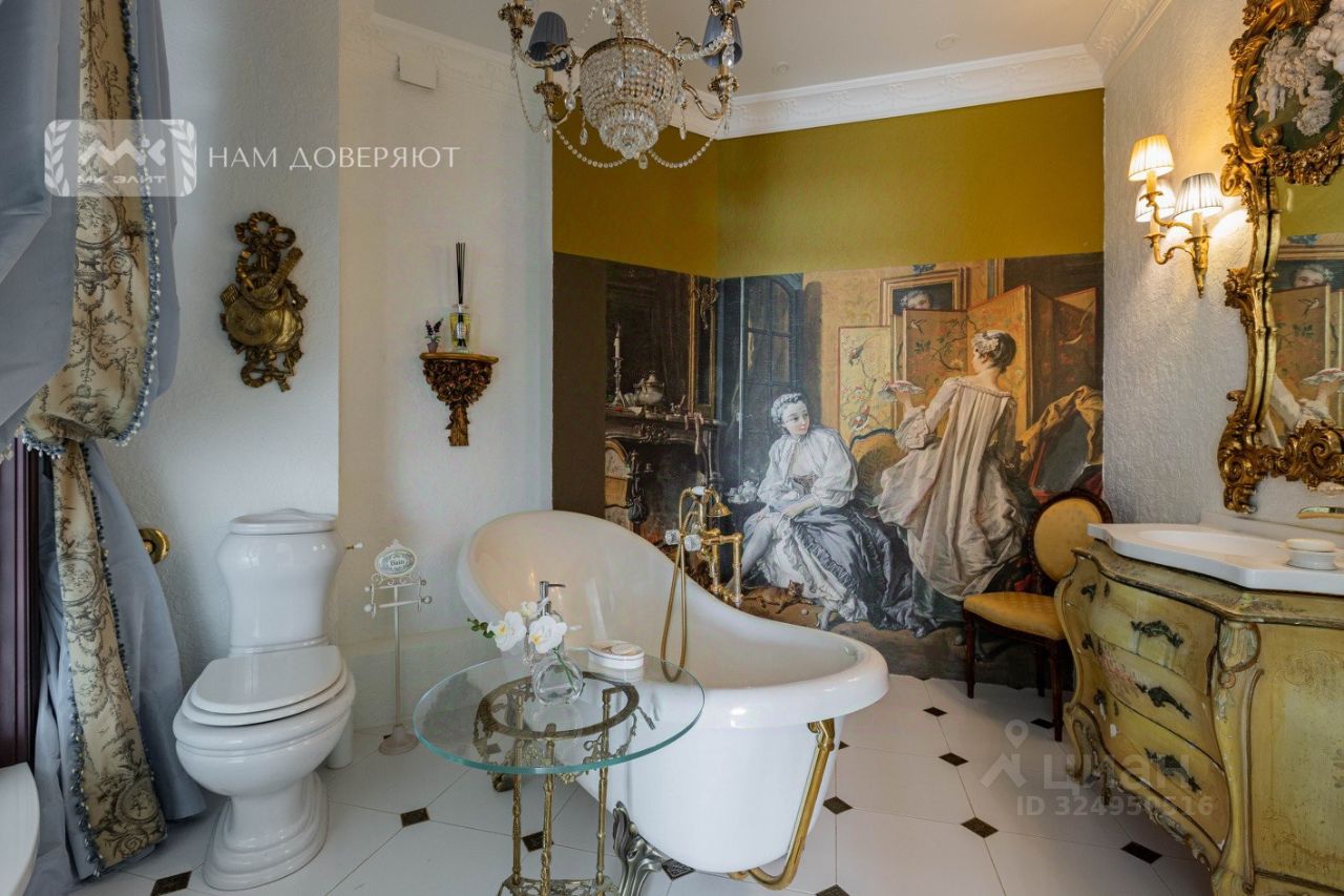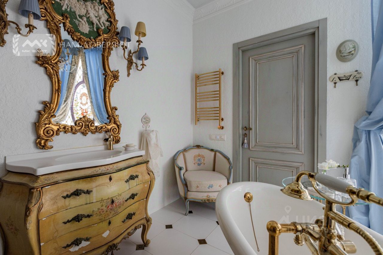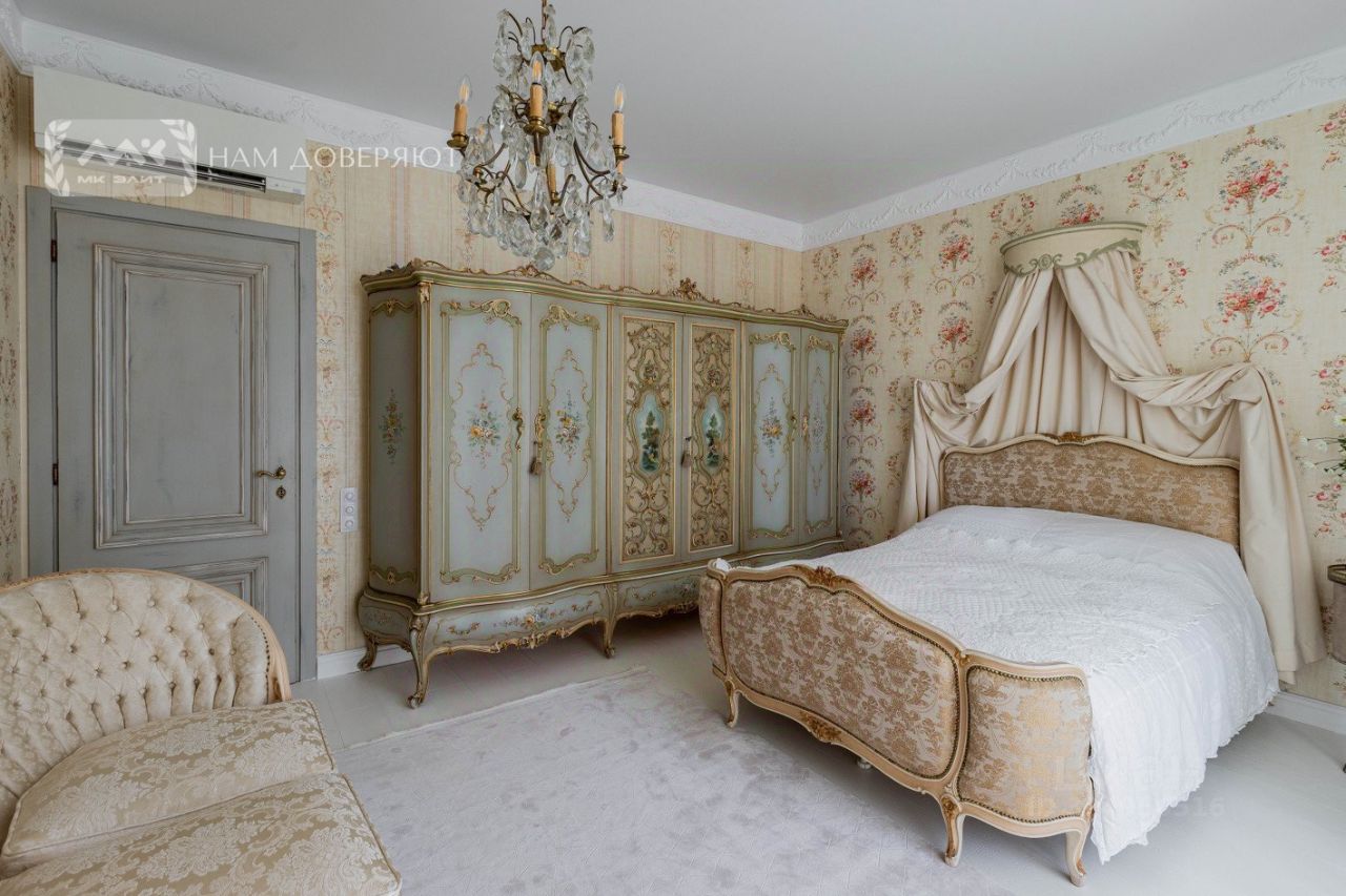 Вся мебель привезена из Франции, двери и кухня - Италия, в отделке - натуральный камень, лепнина, витражи. Теплый пол, чугунные радиаторы, каменная ванная, установлены кондиционеры и блэкаут жалюзи на электроприводе.