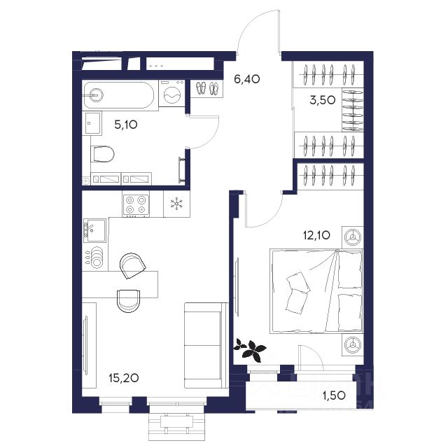 Общая площадь43,8 м2