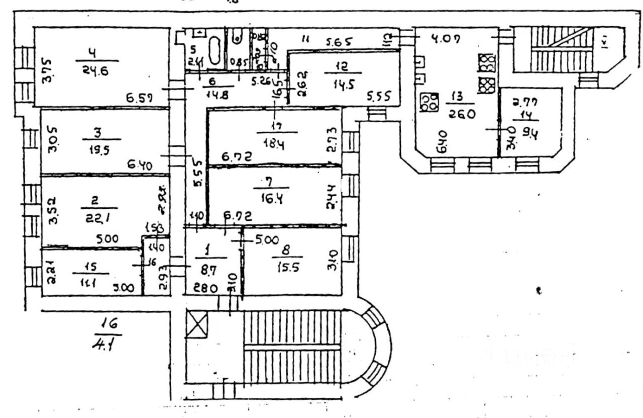 Ковенский переулок дом 9. Общая 221 м2, жилая 142м2, кухня 35м2.Высота потолка Н=3м. Единственная коммунальная квартира в парадной.