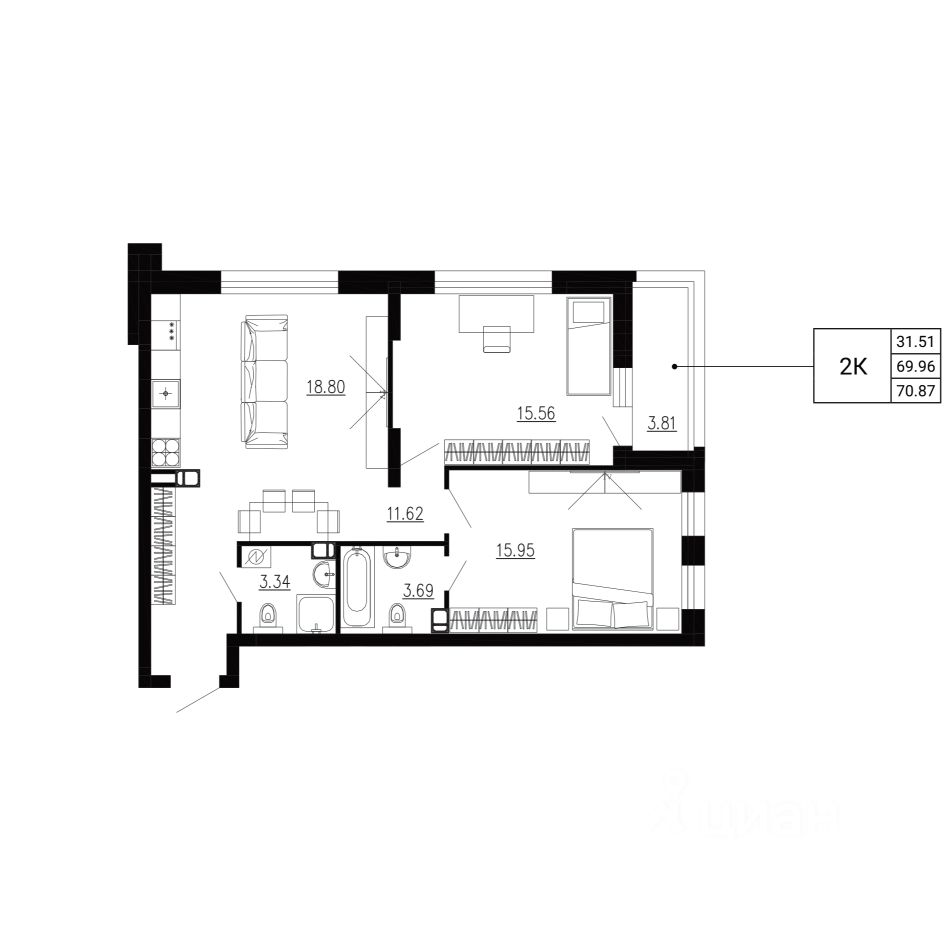 Общая площадь70,87 м2