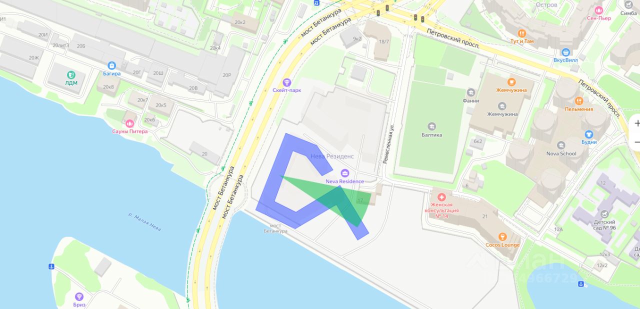 Инфраструктура и транспортная доступность: - Двор свободный от автомобилей, ведется круглосуточное видеонаблюдение - Подземный паркинг с лифтом - В состав комплекса входит детский сад - Современная благоустроенная набережная для жильцов - Жилой комплекс расположен на Петровском острове в районе с развитой инфраструктурой: здесь работают детские сады, школы магазины, спортивные центры, конный клуб и стадион Петровский - В пешей доступности находится Большой Петровский парк с прудом и зонами отдыха - До стaнции метpo ''Чкаловская'', ''Спортивная'' 15 минут пешком
