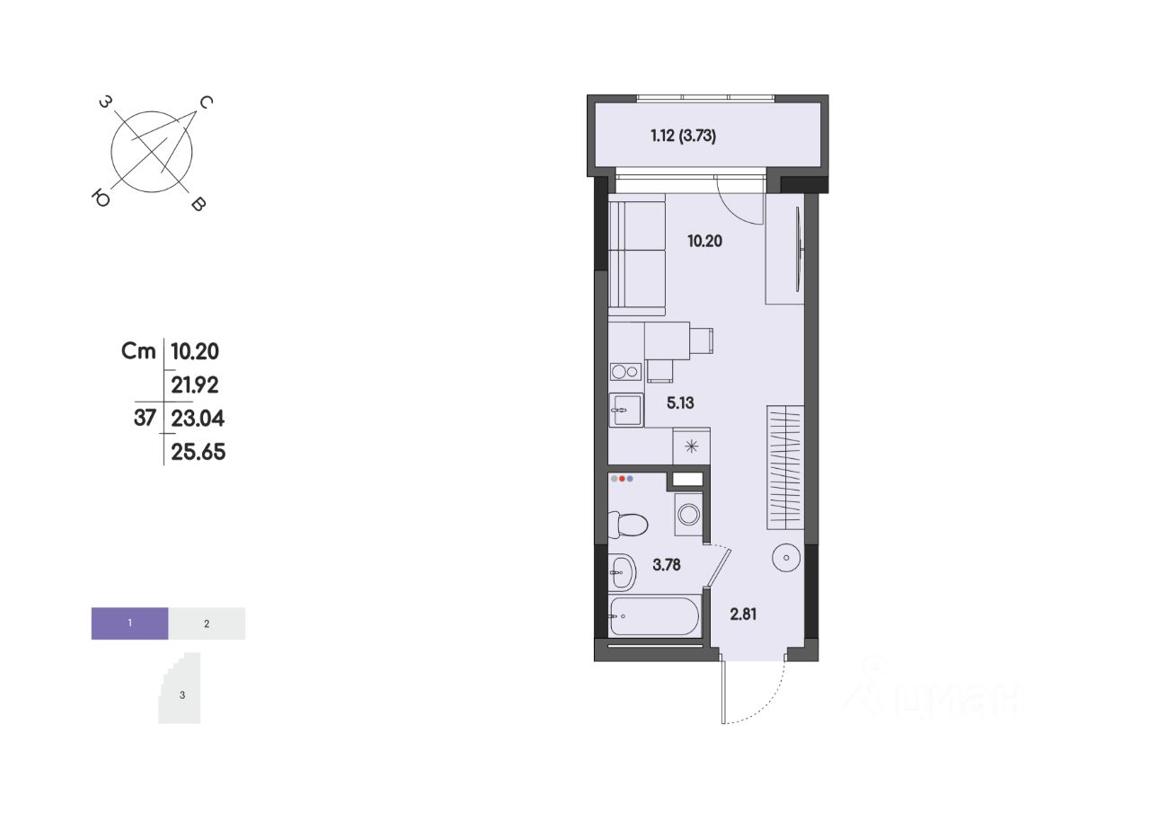 Общая площадь23,04 м2