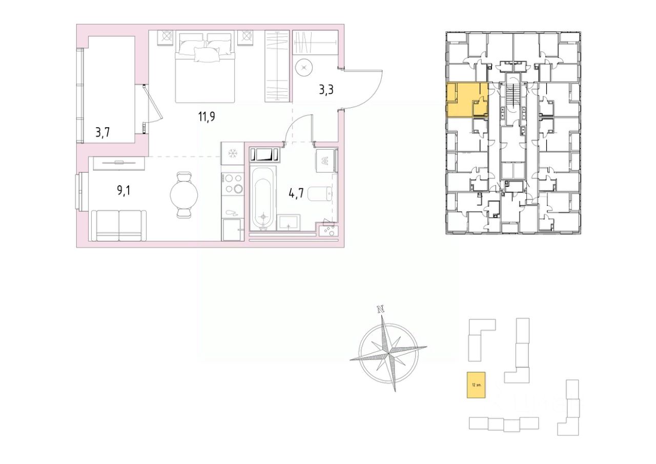 Жилая площадь11,9 м2