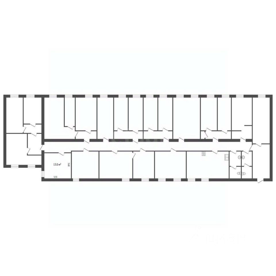 Квартира - 20-ти комнатная гостиничного типа. В квартире большая кухня с двумя плитами и четырьмя мойками, что позволяет готовить еду одновременно нескольким жильцам. Также в квартире два санузла: один совмещённый с душем, другой отдельный с раковинами.