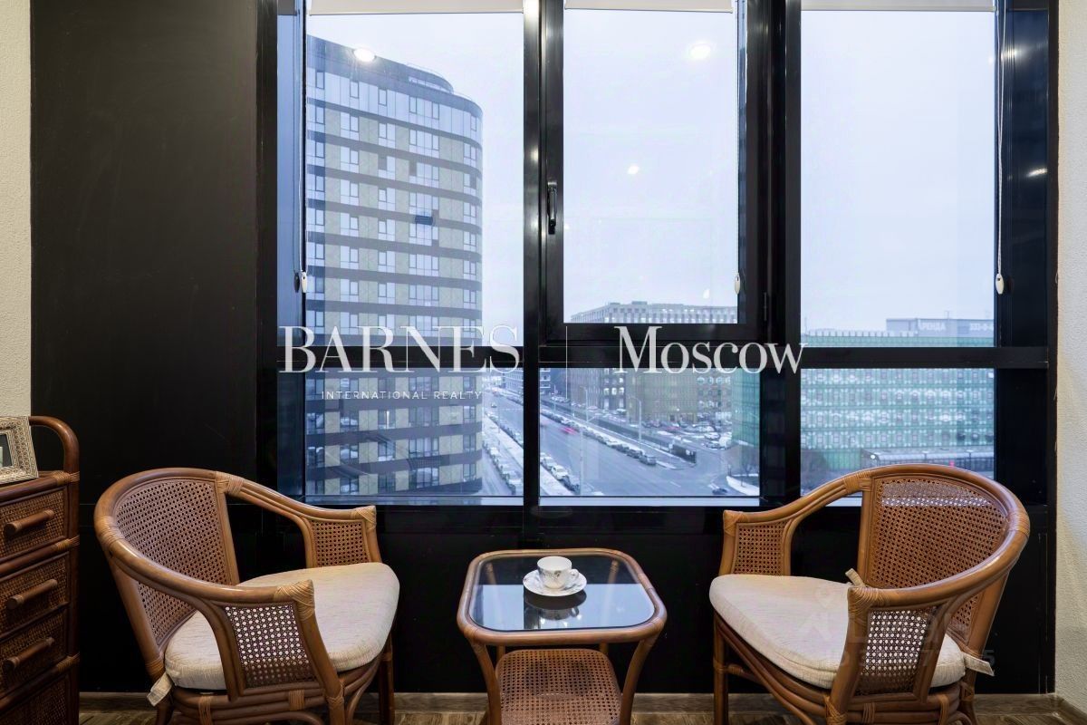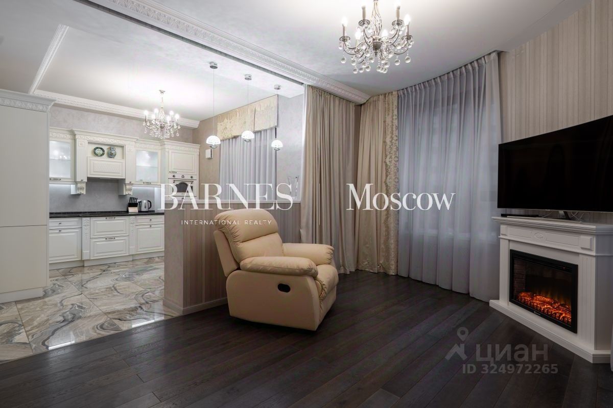Атмосфера и статус: * Простор и свет: Свободная планировка, потолки 3 м, панорамное остекление, наполняющее пространство естественным светом. * Вид на воду: Окна из двух комнат выходят на пруд — ключевое преимущество для создания релаксирующей атмосферы. * Состояние ''de luxe'': В квартире практически не жили. Вся обстановка, которую вы видите, остаётся новому владельцу.