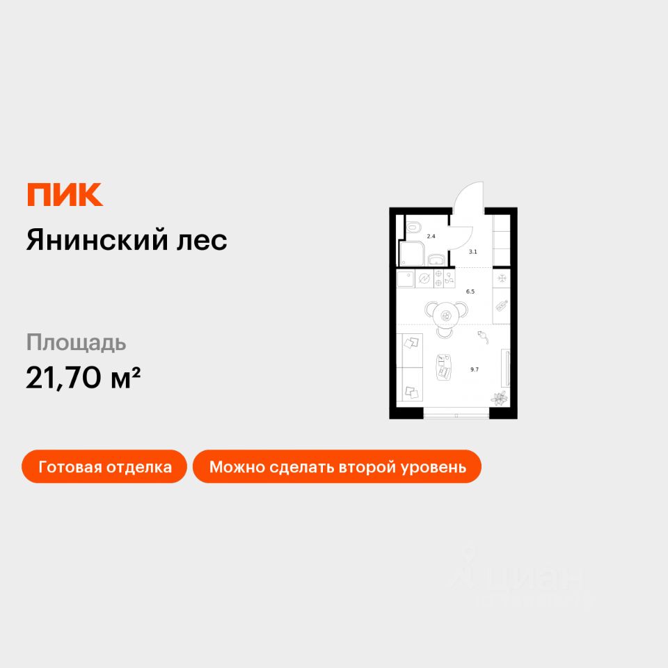 Общая площадь21,7 м2