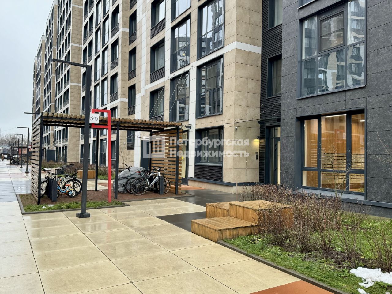 Территория комплекса закрытая. Во дворе расположены современные детские и спортивные площадки, детский сад, паркинги для велосипедов. По периметру дома - кафе, магазины, салоны. В пешей доступности школа, поликлиника.