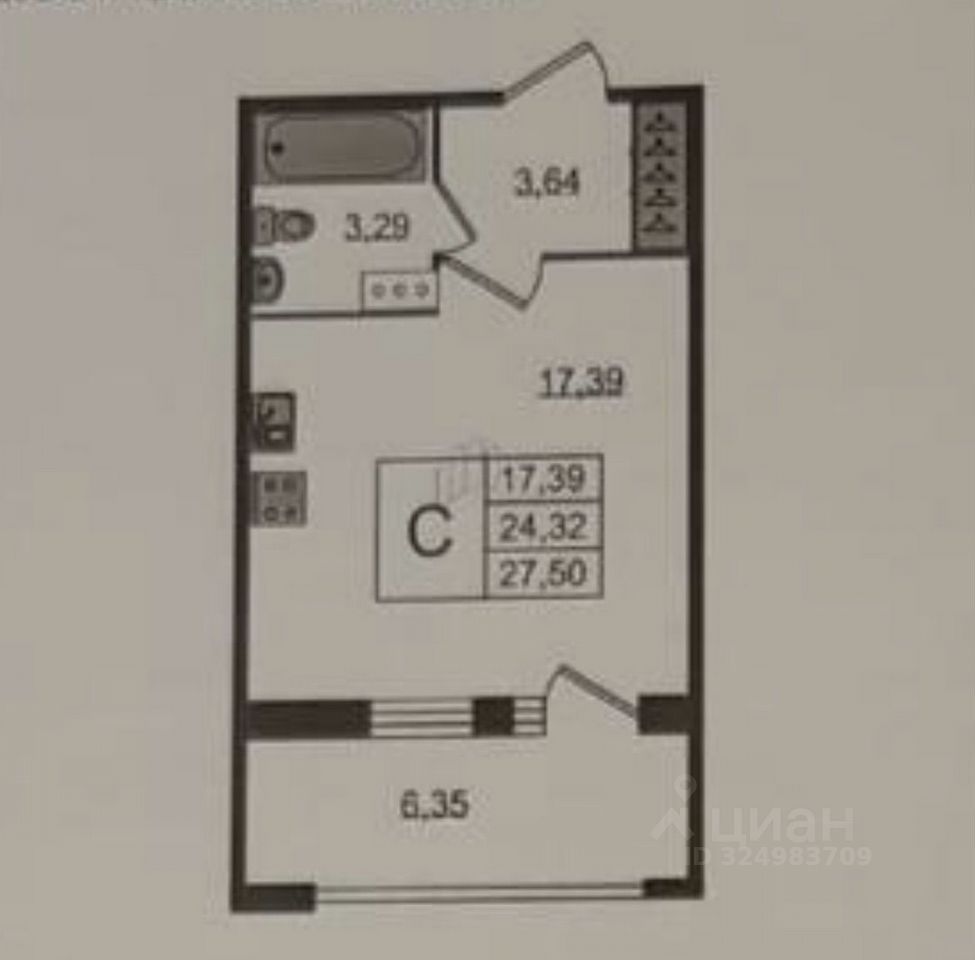 Площадь c зacтeклeнной лoджиeй - 27,5 мeтpa