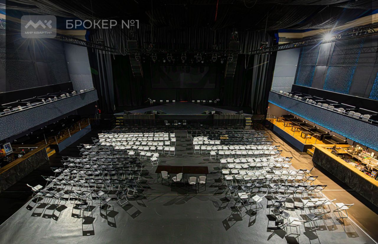 Сценарий 1 — покупка здания ''как есть'' Готовый мультиформатный центр / бизнес-центр Текущий формат: 1 этаж: Перекресток, торговые галереи, банкоматы 2 этаж: концертный зал на до 2 500 гостей, сцена 157 м 34 этажи: офисные блоки Большое фойе площадью 450 м², 4 бара, двухуровневые VIP-зоны 8 гримёрок, просторный бэкстейдж, современное оборудование Арендный поток: 4,1 млн руб. + КУ Арендная ставка: ~11 076 ?/м²/год