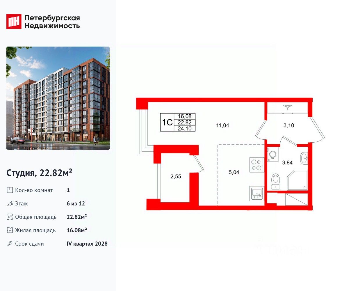 Удобная, классическая, функциональная европланировка, вместительная прихожая 3.1 м². Общая площадь студии - 22.82 м², жилая 16.08 м², высота потолка 2.77 м.
