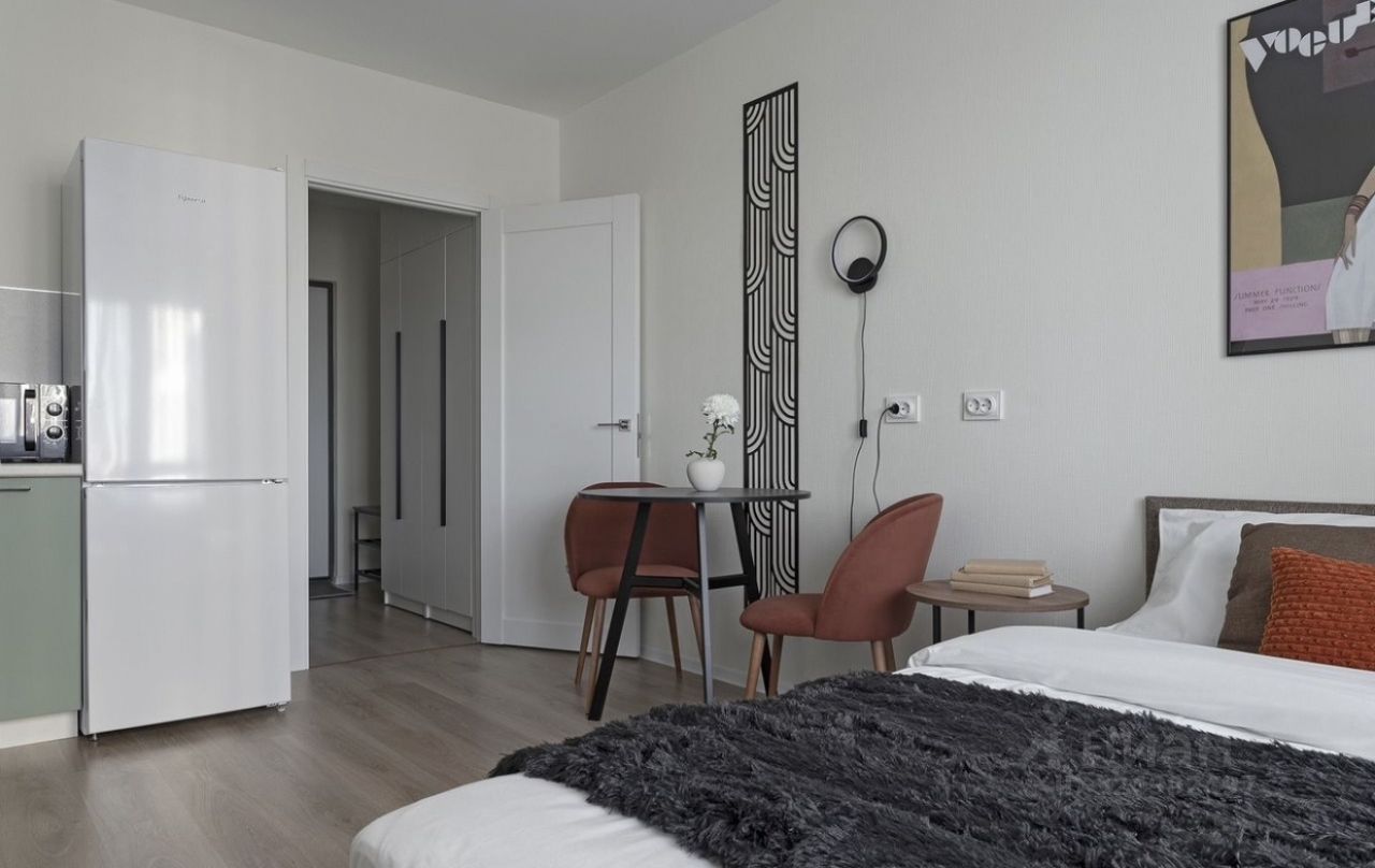 В интерьере — свежие отделочные материалы, качественная мебель и всё необходимое для повседневной жизни: — Удобная зона для сна и отдыха — Современная кухня со встроенной техникой — Санузел в стильной отделке — Высокоскоростной интернет (по согласованию)