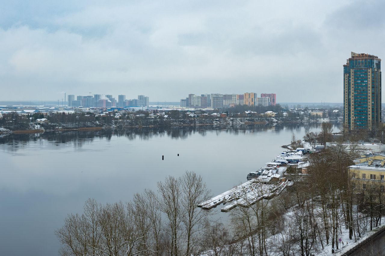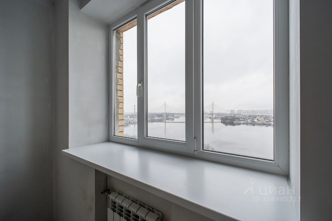 Продается видовая 2-комнатная квартира с прямым видом на Неву, Вантовый мост и прибрежные пейзажи по адресу - Рыбацкий пр, дом 15.