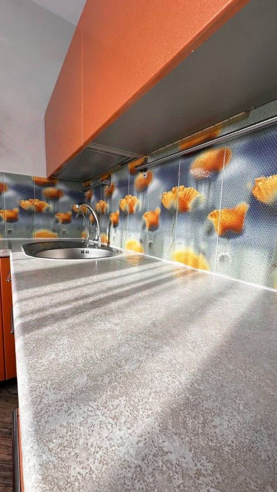 Кухня полностью укомплектована гарнитуром и всей необходимой техникой, включая новую плиту, холодильник и вытяжку 2024 года.