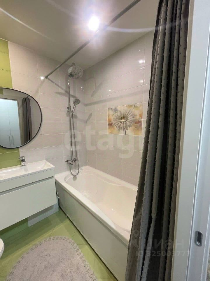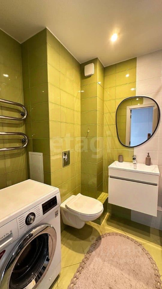 Комната дополнена шторами блэкаут для комфортного отдыха. Спальня имеет выход на застекленную лоджию. Санузел оборудован современной подвесной сантехникой: инсталляция с унитазом, тумба с раковиной и ванна с душевой системой, а также установлена тихая стиральная машина LG с прямым приводом. В прихожей для организации хранения предусмотрен встроенный шкаф-ниша с системой хранения, комод и обувница.