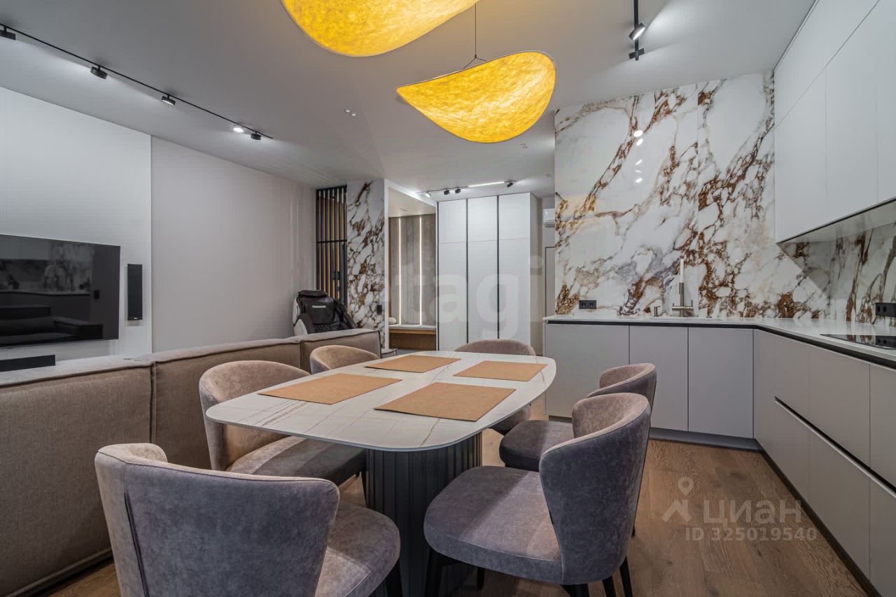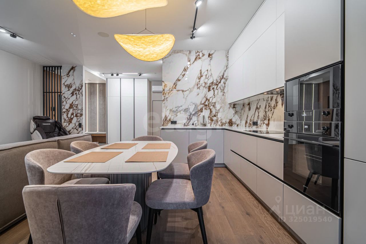 Стильная кухня-гостиная с идеально выверенной эргономикой, итальянским керамогранитом и полностью встроенной техникой создаёт ощущение современного европейского пространства. Мягкий свет и лаконичные линии мебели делают атмосферу по-настоящему уютной. Большой диван и просторная обеденная зона позволяют собраться с друзьями или насладиться спокойным вечером в одиночестве.