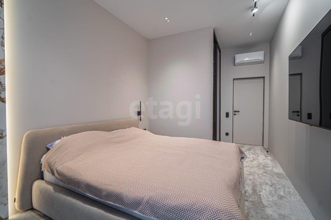 Стильная кухня-гостиная с идеально выверенной эргономикой, итальянским керамогранитом и полностью встроенной техникой создаёт ощущение современного европейского пространства. Мягкий свет и лаконичные линии мебели делают атмосферу по-настоящему уютной. Большой диван и просторная обеденная зона позволяют собраться с друзьями или насладиться спокойным вечером в одиночестве. Спальня выполнена в спокойных светлых тонах, с мягким ковролином и дизайнерскими решениями, включая акцентные панели и продуманное освещение. Рабочая зона органично встроена и не перегружает пространство — идеальный вариант для тех, кто ценит порядок и эстетику.