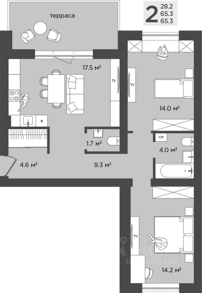 Общая площадь65,3 м2